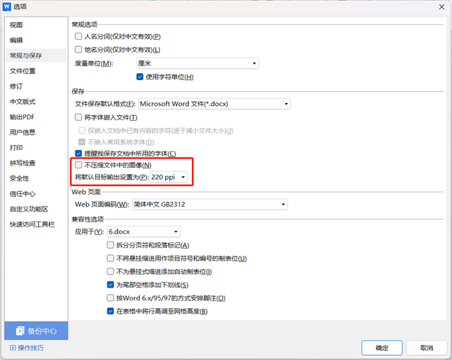 3.在该设置区域,找到「不压缩文件中的图像」并勾选。这样文档保存时就会保留图片原始数据,不再自动压缩,保障清晰度。