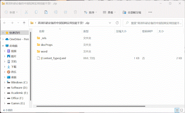 将文件扩展名修改为.zip,之后解压可以得到一个文件夹,在解压后的文件夹中找到“word -> media”文件夹,可以发现Word文档中所有的图片都保存在该文件夹中。请看如下演示: