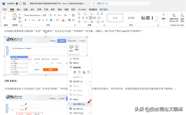 最佳答案 方法一:保存Word文档时,直接选择“文件-> 另存为 -> 网页(*.htm,*.html)”,另存为网页格式; 此时会产生一个文件夹,打开该文件夹可以看到文档内所有的图片都在里面。 方法二:<......