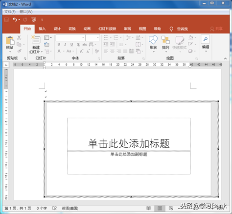 4、设置完成后鼠标单击幻灯片外任意位置,即可返回Word界面,并且幻灯片成功生成在Word文档中。