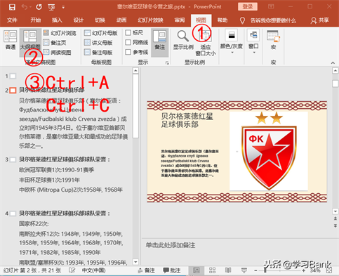 2、在大纲视图中,我们可以通过鼠标复制想要插入Word文件的内容,在大纲视图中可一次性复制多张幻灯片内容。