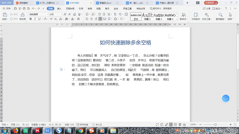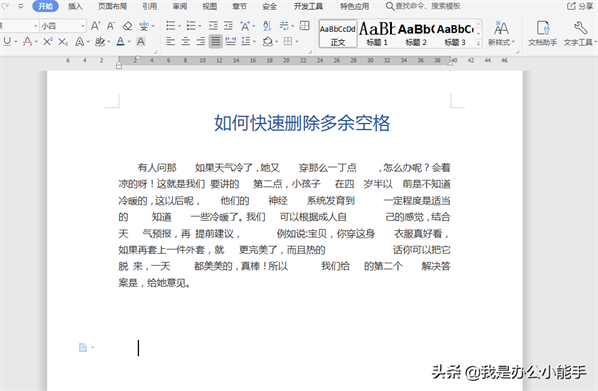 是不是很方便呢?这样就可以快速把讨厌的多余空格删除了。不用再一个个空去删除了,为我们节省了很多时间