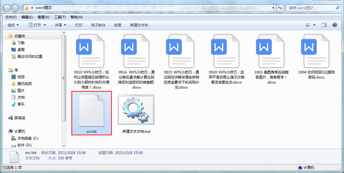 5.双击修改扩展名后的文本文档,此时在文件夹中会出现一个名为“src.txt”的新文件。