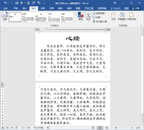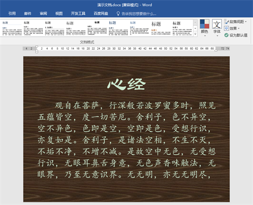 4.返回文档,可见文档中的页面已经添加上了“胡桃”纹理背景。