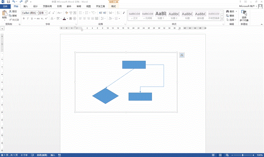 我们希望插入的图形能够像在PPT中一样,在一张画布上显示,这样进行批量操作就会比较方便,其实Word中也是有的。在插入选项卡中找到形状选项,找到最下面的“新建绘图画布”,这样就新建了一张画布,之后的整个流程图都将在这张画布上操作,之所以使用这个画布,是因为不仅操作简单,它还有一个比PPT更强大的功能,那就是关系联结功能,请看下面的例子,我们绘制了两个图形,并将它们连接起来,通常情况下我们直接用带箭头的直线将它们连起来就行了,但是我们希望图形之间的连接是可以进行移动和缩放的,这就要求连接线是随着图形的移动而移动。当我们选择插入连接线的时候,图形周围会有很多的控点,我们将两个图形的控点连接起来,两个连接的点瞬间就会变成绿色,这个时候,我们移动图形,连接线就会跟着移动。另外,连接线中间可能会有一些黄色的点,这些黄色控点可以更改图形的形状、角度等。