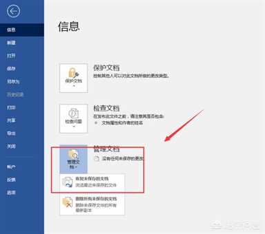 2、然后我们点击文件然后找到信息,在信息中找到管理文档,选择恢复未保存的文档,