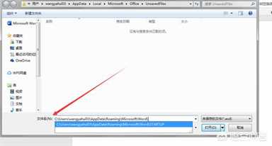 3、然后我们将刚才粘贴的路径复制到文件名这个位置直接点击打开会看到一个文件夹,点击进去即可,可以根据自己word未保存的时间,或者是文件名,找到自己未保存的文件