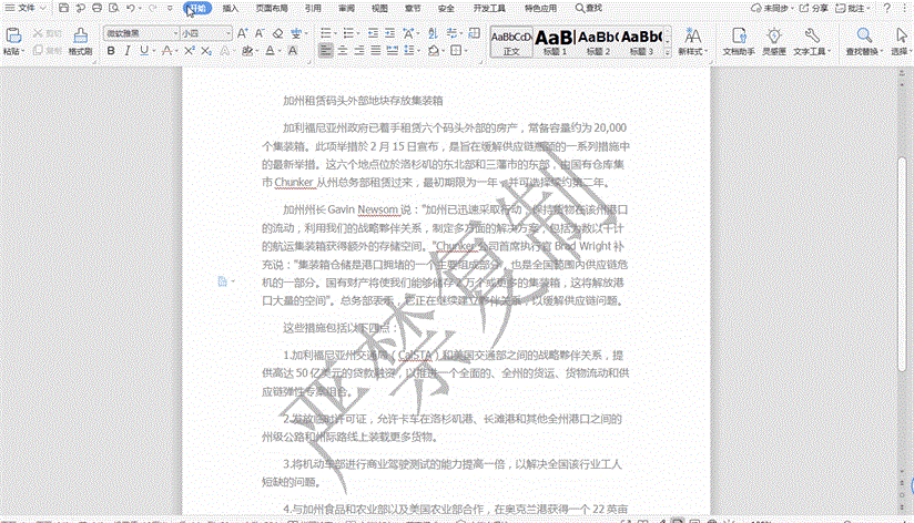 操作步骤如下:打开文档,选择菜单栏目【页面布局】-【背景】-【水印】,然后点击【水印】-【删除文档中的水印】