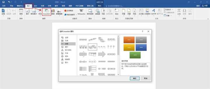 除了自己手动创建的方法之外,我们还可以使用Word中的“Smart Art”功能来帮助完成绘制。
