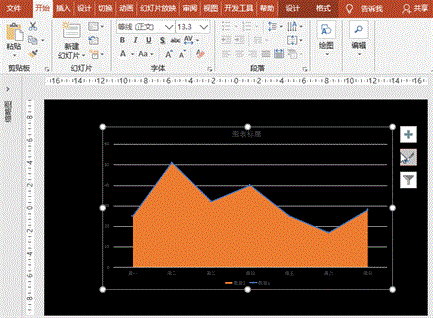 执行“插入”菜单-“插图”之“图表”-“组合图”,系列名称之数量1中设置图表类型为“带数据标记的折线图”、数量2为“面积图”,“确定”之;在Microsoft PowerPoint中的图表中输入或Copy步骤1中的原始表格数据,并删除多余的列,关闭图表窗口。