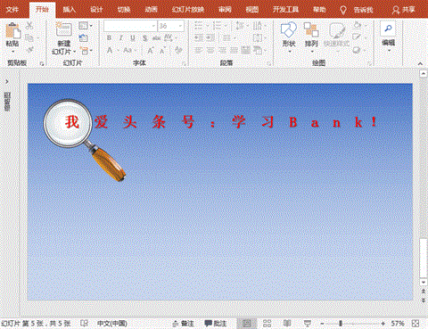 最佳答案实现思路:放大镜从左至右掠过文字,放大镜到文字上时文字放大,过后文字大小还原。操作步骤:1、背景:打开PowerPoint软件,新建幻灯片,右键“设置背景格式”-“渐变填充”-设为蓝白色渐变填充。2、输入文字:“插入”菜单-“文本”-“文本框”-“横排文本框”,插入文本框,输入文字,设置为宋体、大小......