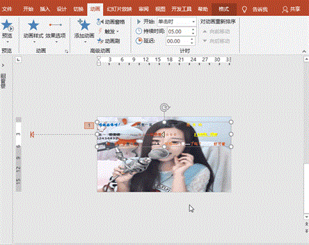 3、文字滚动设置:缩小幻灯片,选择文本框,执行“动画”菜单-“添加动画”-“更多动画路径”之“直线和曲线/向左”,按住Shift键调整动画的终点红圆点,使其至页面左侧边缘,点击动画菜单之“动画窗格”按钮,点击右侧箭头,效果标签中设置平滑开始、平滑结束均为0,计时标签中设置开始为“单击时”、持续时间5秒、重复为“直到下次单击”。得到图片向左滚动的效果。