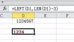 说明:LEN计算出总长度,LEFT从左边截总长度-3个