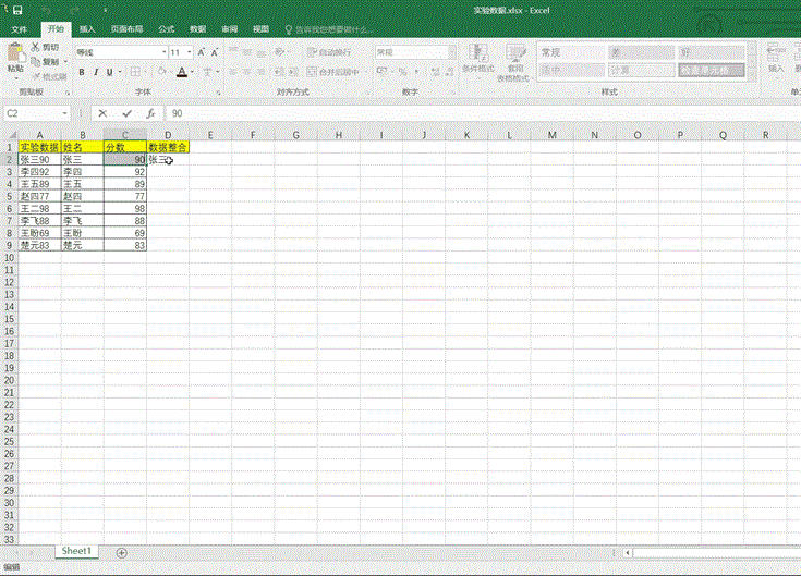 如下图,如何将“姓名”和“分数”一栏的数据进行快速整合?