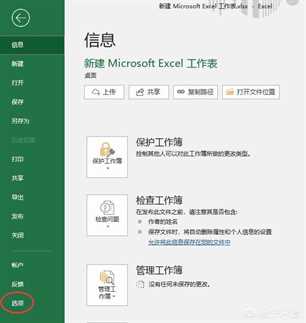 1、打开Excel 2016 — 点击左上角的“文件”选项卡 — 点击“选项”。