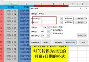 但对于非时间格式的数据,我们可以通过替换来转变成常规时间格式,如下图中将“.”替换为“/”。
