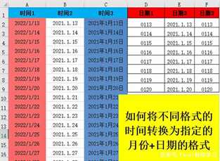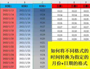 最佳答案在下图中有三种不同形式的时间,我们需要将三种时间转换为三种指定的日期格式。在图中我们发现日期2的数据没有发生变化,日期1日期3都通过公式转换成指定的日期格式。我们点击日期1下的单元格,看一看它的公式:=TEXT(A2,”mmdd”)TEXT是一个文本函数,表达式为:=text......