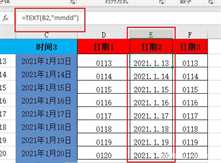 我们点击日期1下的单元格,看一看它的公式:=TEXT(A2,”mmdd”)