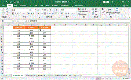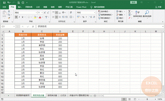 如果遇到多列需要不重复的名单怎么来处理呢?如下所示