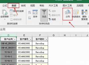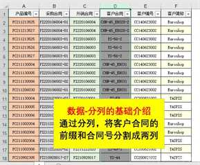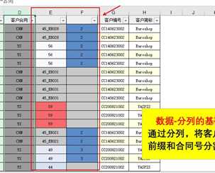 如在上图中,通过分列将客户合同号列分割成两个部分。