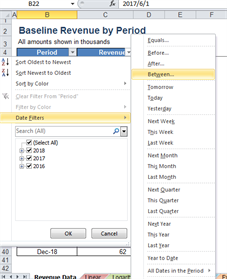 3.在第一列的下拉箭头中选择“日期筛选”,在后面可以根据自己的要求选择。(例如某一日期之后,某一日期之前,介于两个日期之间等)
