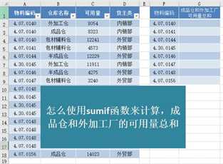 如果仅是计算外加工仓和成品仓的数量总和,那么可以通过sumif函数进行单条件求和。