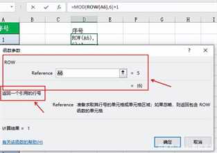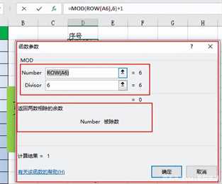 弄清楚了mod函数和row函数的含义,我们再回到公式,row(A6)等于6,MOD(6,6)的结果等于0,再加上1,则等于1.