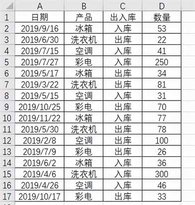 1、全选数据,单击【插入】——【数据透视表】,将产品字段拖动到行字段,出入库字段拖动到列字段,数量字段拖动到值区域。