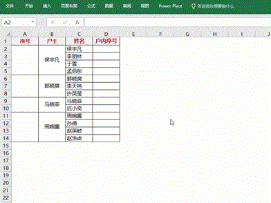 若是要对户内人员再编号,则,可以根据合并单元格的特性来编码。
