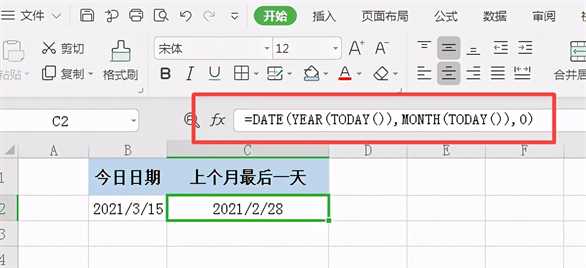 在单元格中输入函数公式【=DATE(YEAR(TODAY()),MONTH(TODAY()),0)】