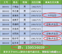Excel表中员工生日设提醒设置效果展示