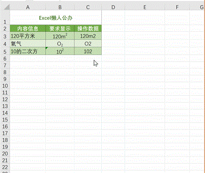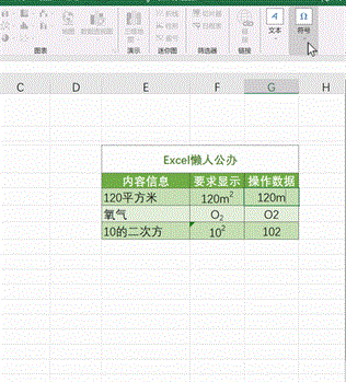 方法3:Excel中符号自带该上标,通过Excel符号插入功能实现,操作如下面的动图所示。