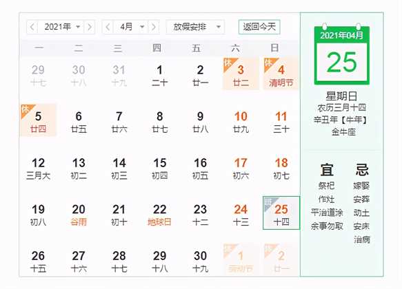 前面的公式=WORKDAY(A2,B2)省略了第三个参数Holidays,返回的日期2021/4/7仅仅排除了星期数为周六和周日的假期。