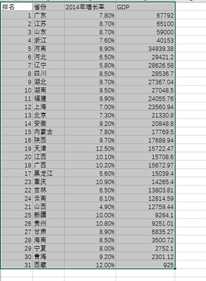 1.首先打开‘2014年中国31生GDP.xlsx’文件,选中数据,如图所示