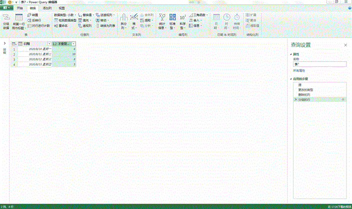 打开表格中的Power Query界面,来源选择“从表”,由于日期一列默认的是日期+时间,我们选择该列右键,更改类型为“日期”,第三列我们用不到,直接删除就可以了。然后在转换选项卡下点击分组依据,分组依据为“日期”,修改一下新列名,操作选择“非重复行计数”,然后确定即可,这样就完成了,直接点击关闭并上载,也可以关闭并上载至指定位置。