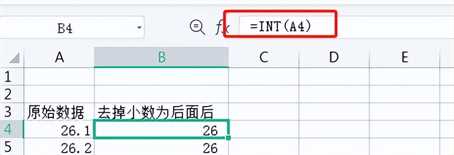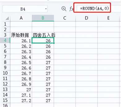 1. 这种情况需要round函数,按上图的例子,需要按红框输入=round(A4,0)