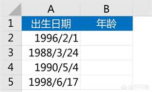 在B2单元格输入公式:=DATEDIF(A2,TODAY(),”Y”) 向下拖拉填充即可,当计算机系统时间到了2019年时,年龄也会自动增加一岁。