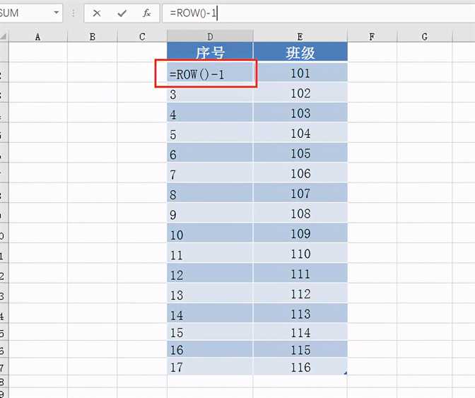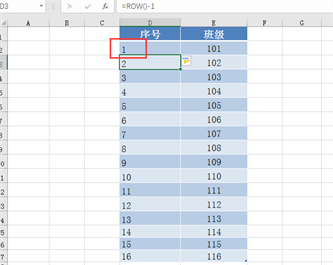 需要修改函数起始值,更新为“=row()-1”,按下回车键。序号实现了从“1”开始依次递增: