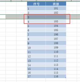 进行删除行操作,结果如下图,序号是断开的,没有自动递增: