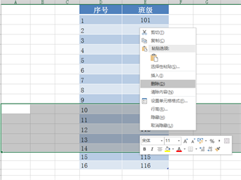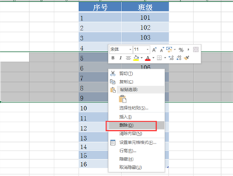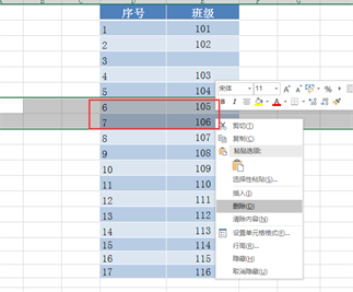 操作二:删除行操作,将现在的序号“6、7”行删除: