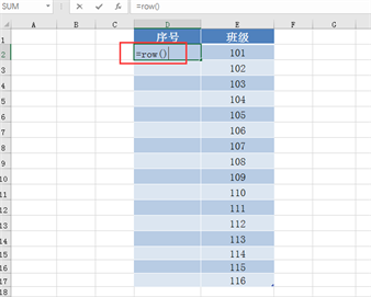 方法二:基于以上操作缺点,小易分享使用Excel函数row()来实现。在序号首行输入“=row()”按下回车键: