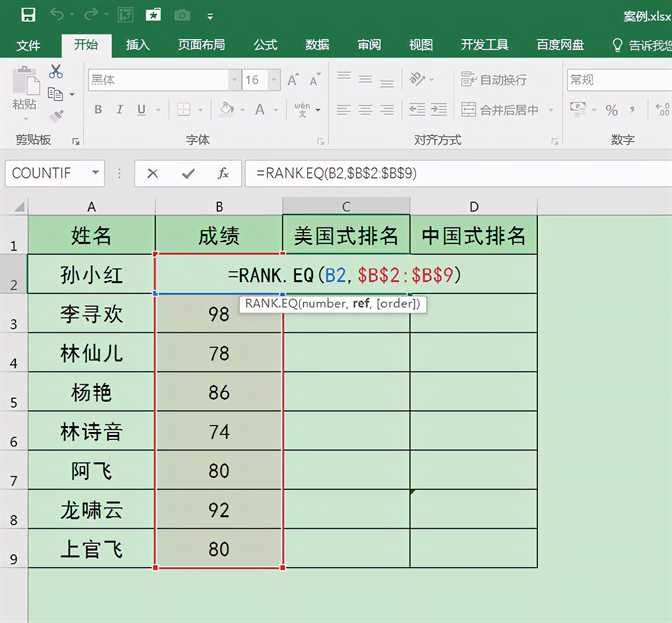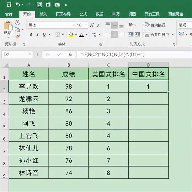 在美国式排名的基础上,我们可以进一步用函数公式进行中国式排名。