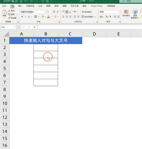 2. 利用快捷键,快速输入对勾与叉号