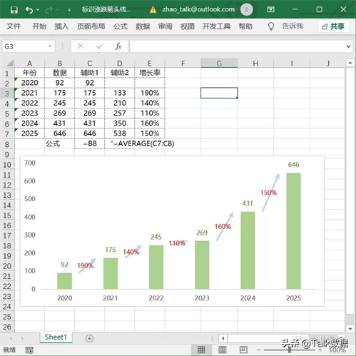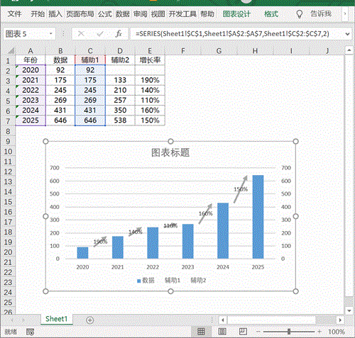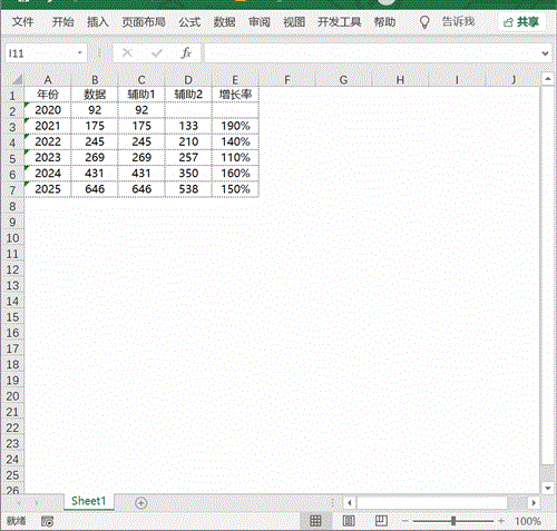 对数据进行简单的处理,添加两列辅助数据以及一列增长率数据。