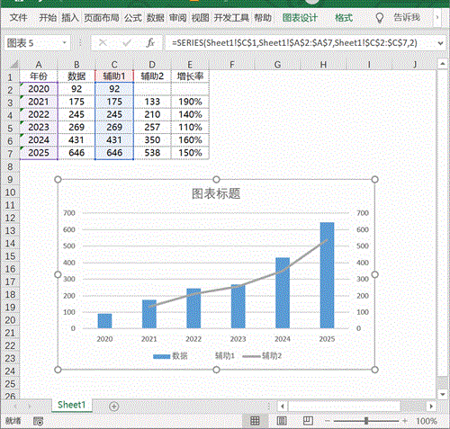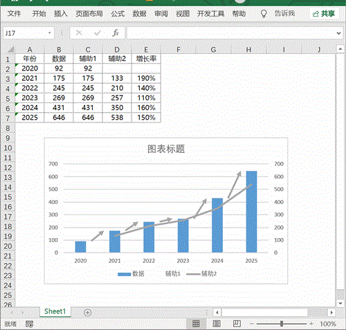 辅助1数据和数据列数据一致,辅助2数据为当前年份和前一年的平均值。