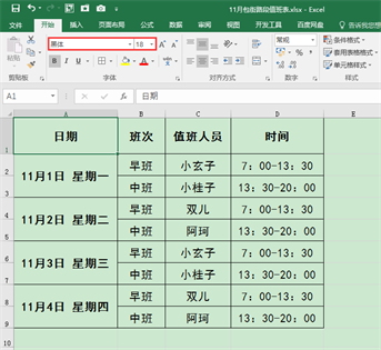 10.最后,可根据实际需要调整A列中合并单元格的字体、字号和边框颜色。