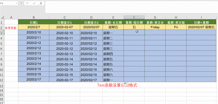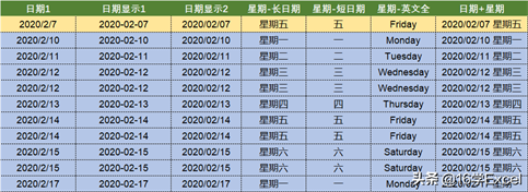 公式7:TEXT(B2,”e/mm/dd aaaa”) 设置为日期+星期