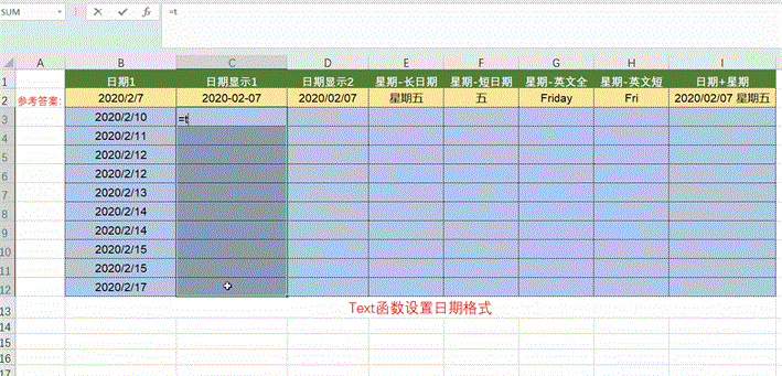 Text函数设置日期格式还有很多,也可以参照单元格中的自定义格式进行设置。