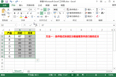 方法一:条件格式快速区分数据差异并进行颜色区分