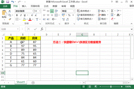 案例说明:相同的两列数据核对差异,我们用快捷键Ctrl+\也可以进行核对。